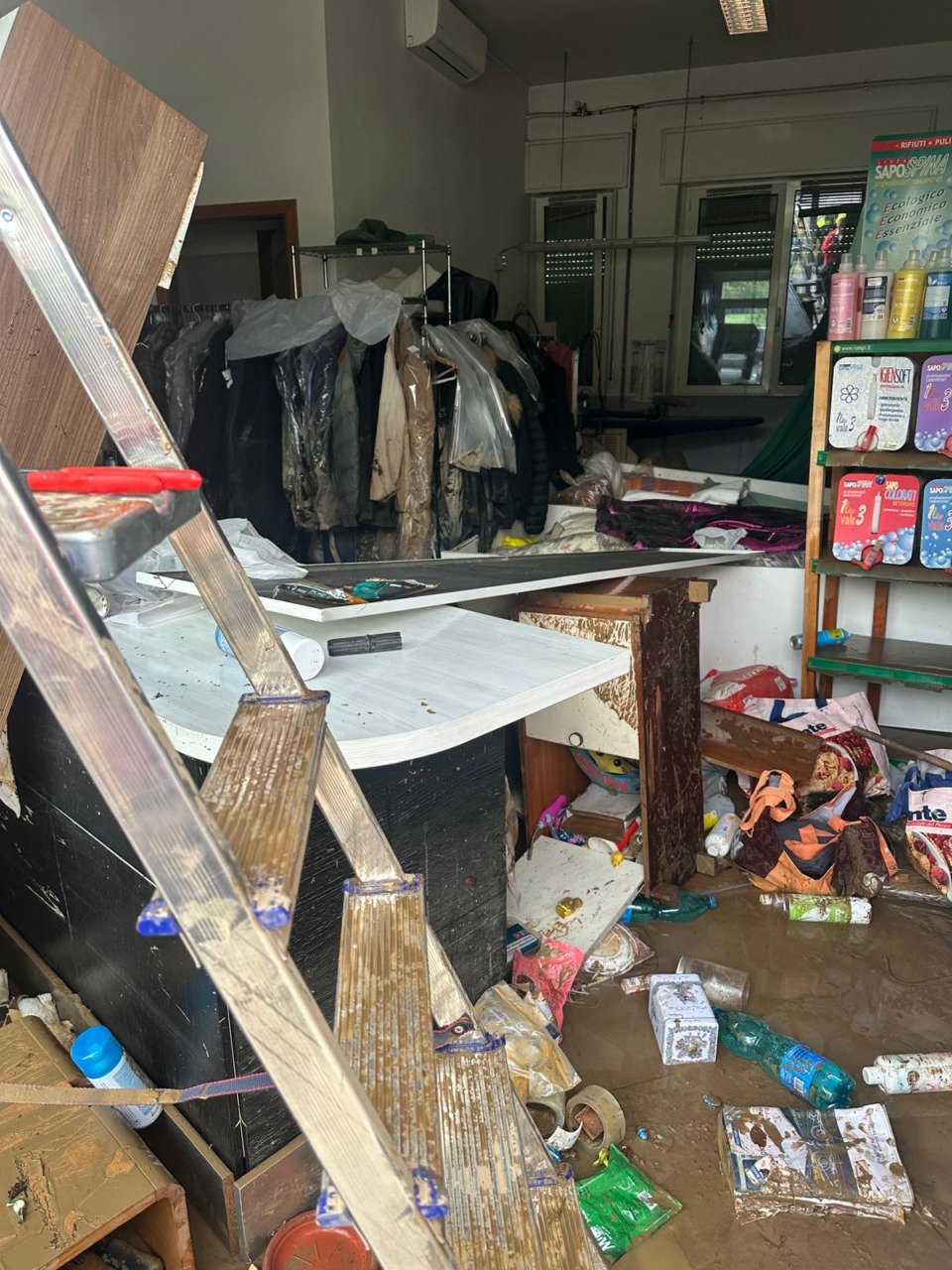 «Tutti i macchinari vanno sostituiti, si tratta di tre lavasecco e tre assi da stiro. Per non parlare del bancone, degli arredi, dei sacchetti, delle grucce, non ci è rimasto nulla. E poi ci sono le pareti da far asciugare, da intonacare e imbiancare…».