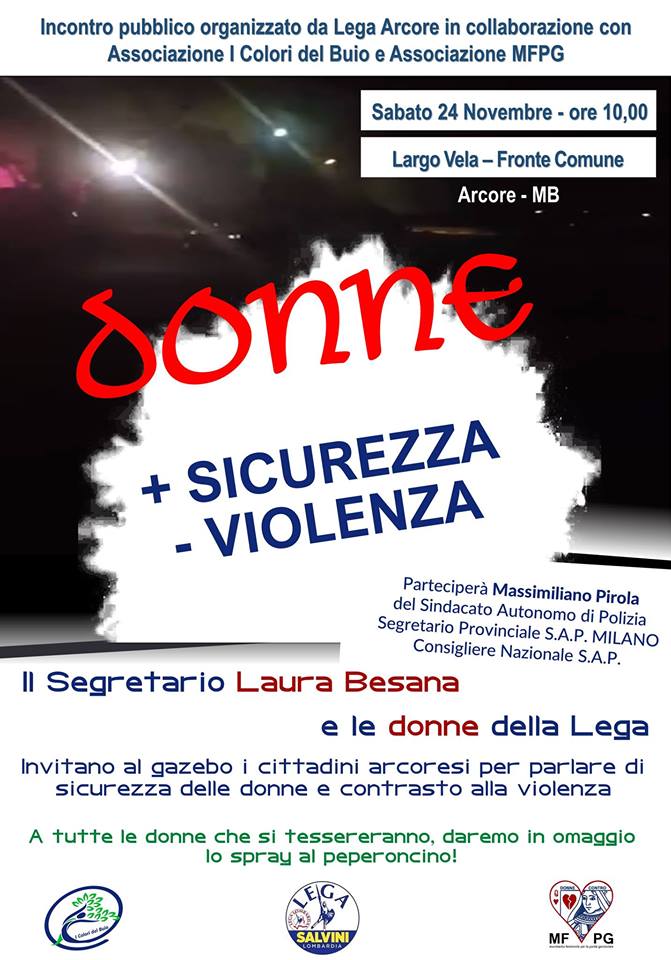“Con questa iniziativa crediamo che possa essere portato all’evidenza dei cittadini il problema della sicurezza legato a quello della violenza e al contempo rendere un po’ più sicure le donne – ha sottolineato il segretario Besana – Al gazebo interverranno rappresentanti della Lega delle Istituzioni e del territorio