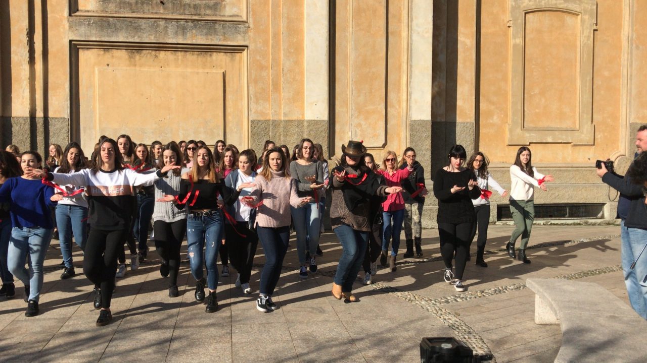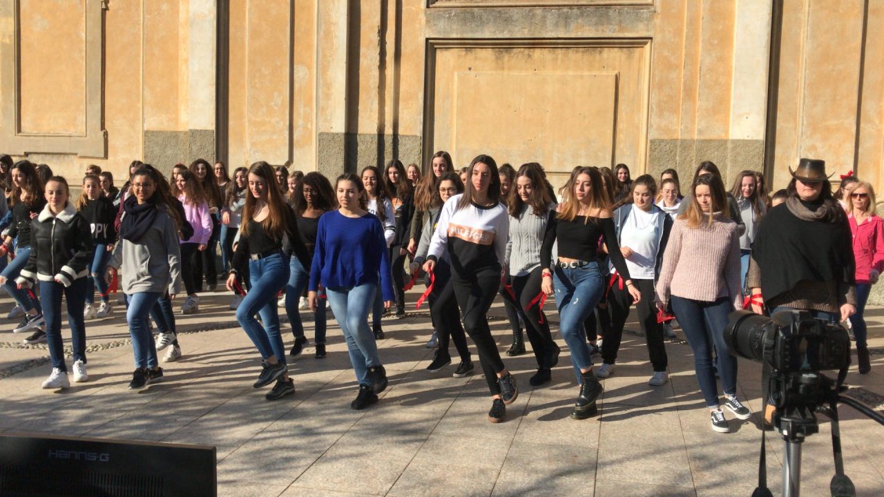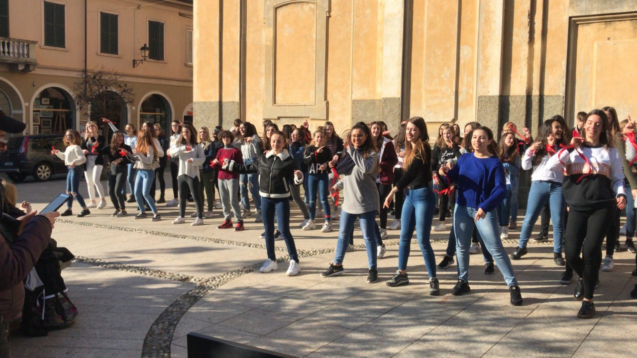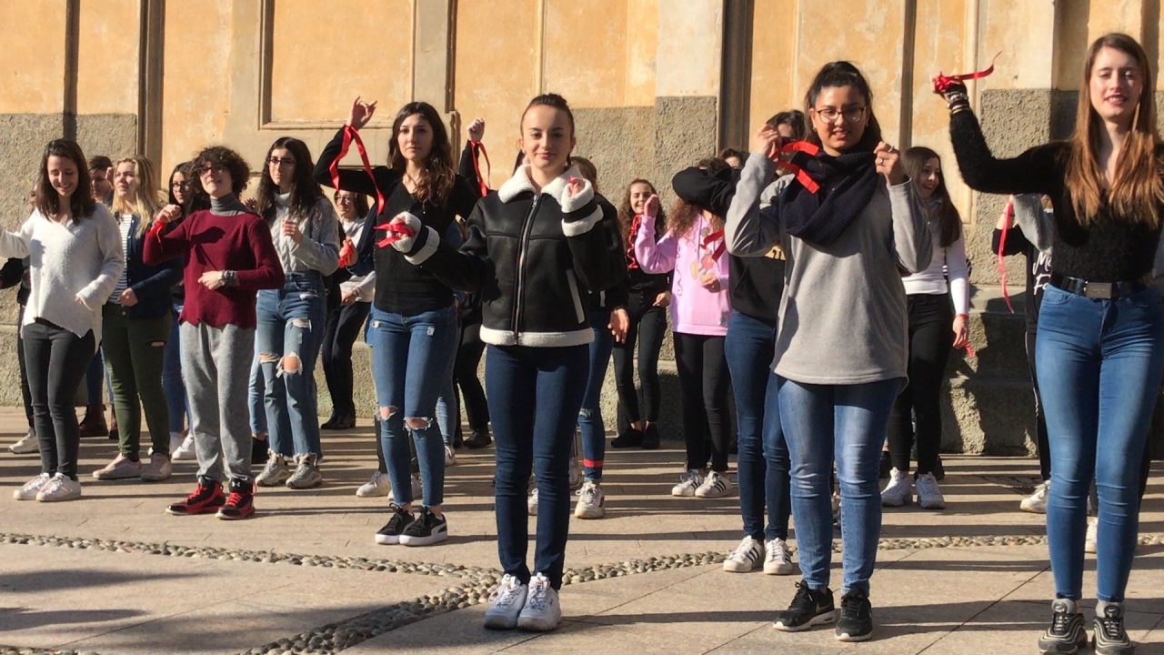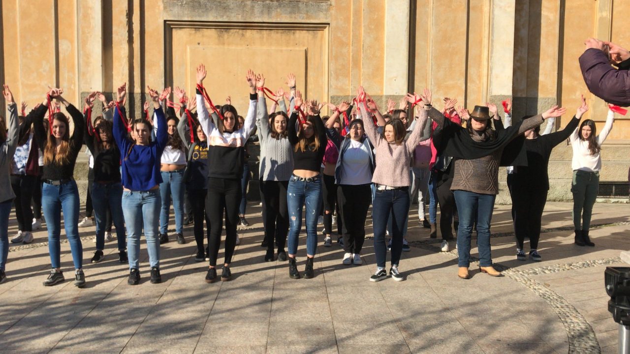Le ragazze dell’Einstein ballano contro la violenza sulle donne. Erano un centinaio le studentesse dell’istituto superiore di Vimercate che, nastri rossi ai polsi, nella mattinata di oggi, giovedì, giorno di San Valentino, hanno invaso piazza Roma, nel centro della città, per dire no alla violenza sulle donne.