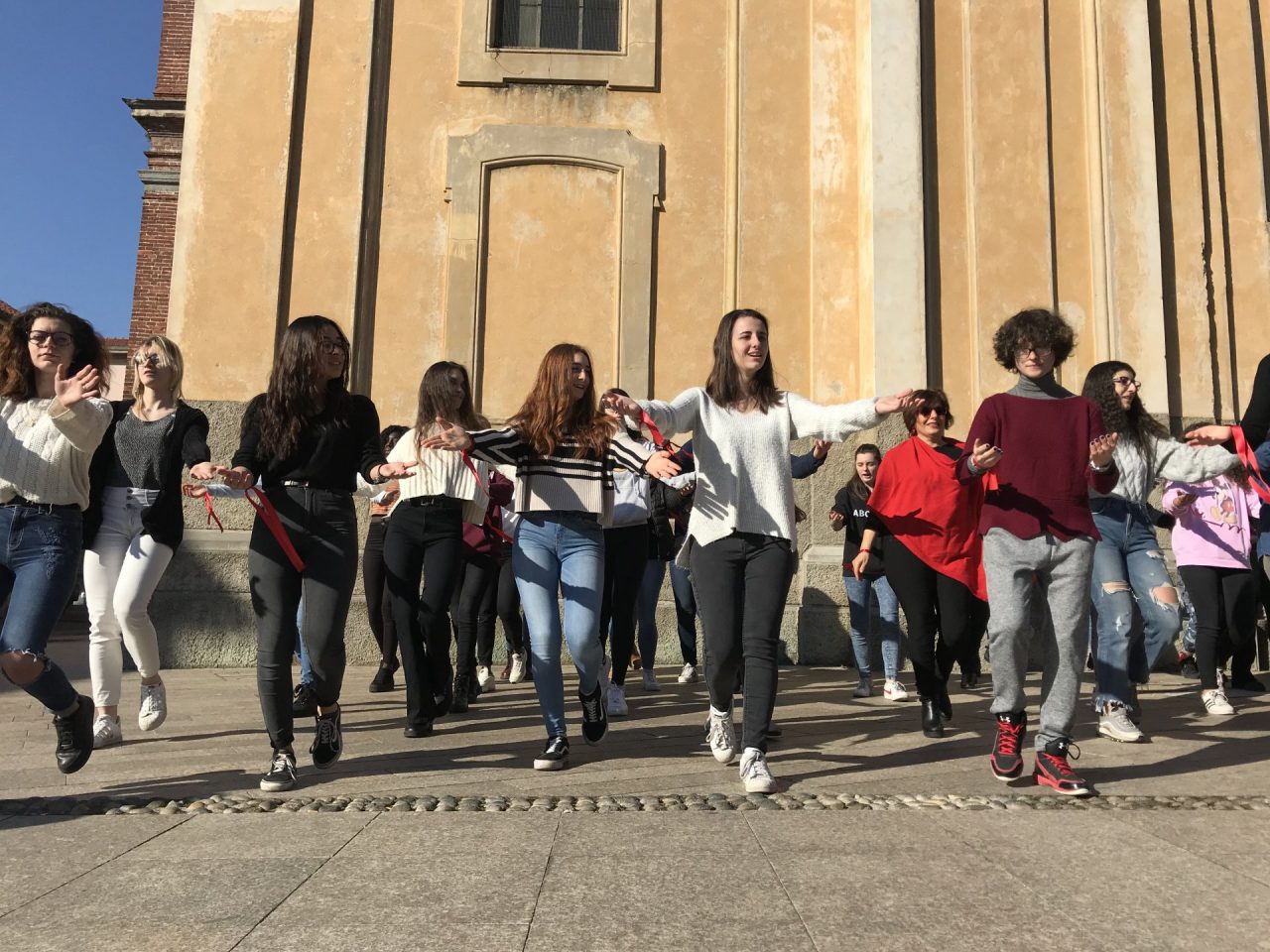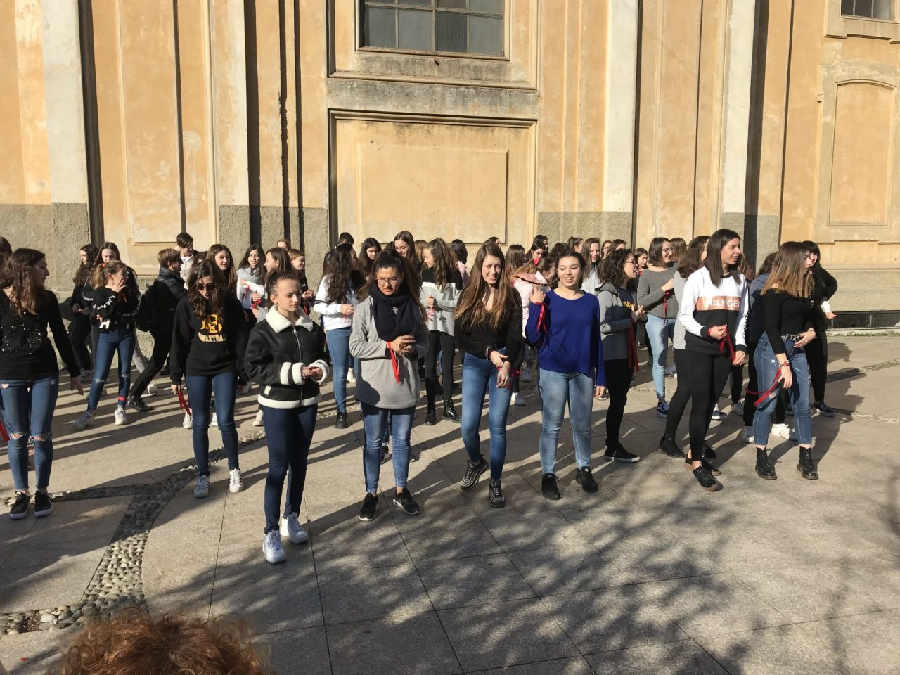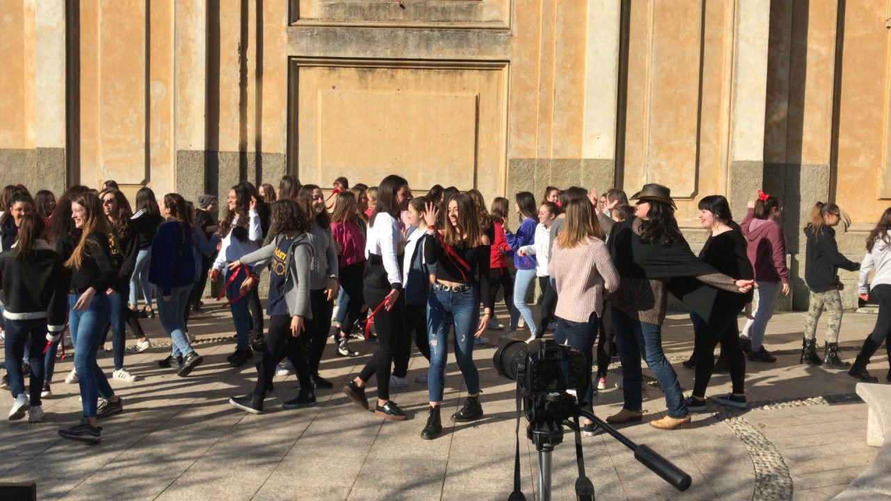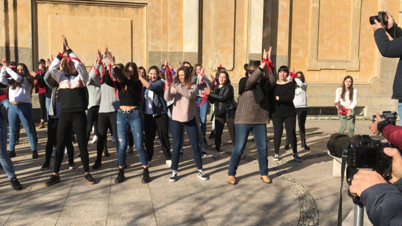Le ragazze dell’Einstein ballano contro la violenza sulle donne. Erano un centinaio le studentesse dell’istituto superiore di Vimercate che, nastri rossi ai polsi, nella mattinata di oggi, giovedì, giorno di San Valentino, hanno invaso piazza Roma, nel centro della città, per dire no alla violenza sulle donne.