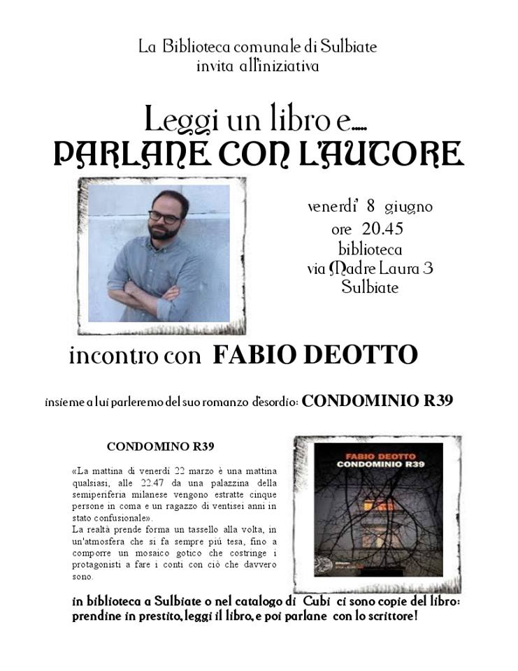 Un sogno nel cassetto che si avvera. E’ quello di Fabio Deotto 35 anni, nato e cresciuto a Vimercate, autore del libro «Condominio R39».