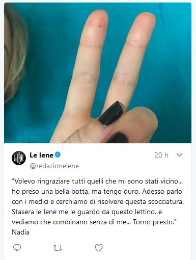 La giornalista ieri ha scritto anche un messaggio sul profilo twitter della trasmissione “Le Iene” rassicurando i suoi fan: