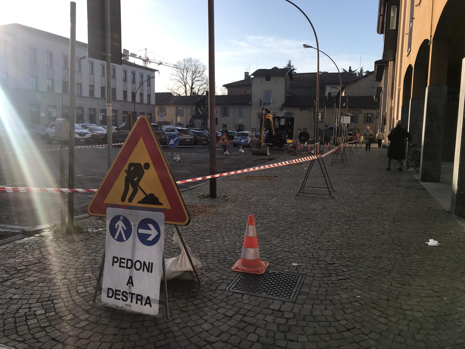 Dopo che nelle scorse settimane sono stati abbattuti i pini marittimi, che da quasi 70 anni caratterizzavano la centrale piazza del comune, sono partiti i lavori per la sistemazione di marciapiedi e aiuole. L’abbattimento delle piante, voluto dall’Amministrazione per evitare che le radici rovinassero ulteriormente i marciapiedi e i parcheggi, aveva portato con se anche un grande stuolo di polemiche da parte dell’opposizione, oltre che da parte di alcuni cittadini. Al centro della polemica, il taglio di piante in salute, che erano diventate nel corso dei decenni anche parte integrante del paesaggio del centro cittadino.