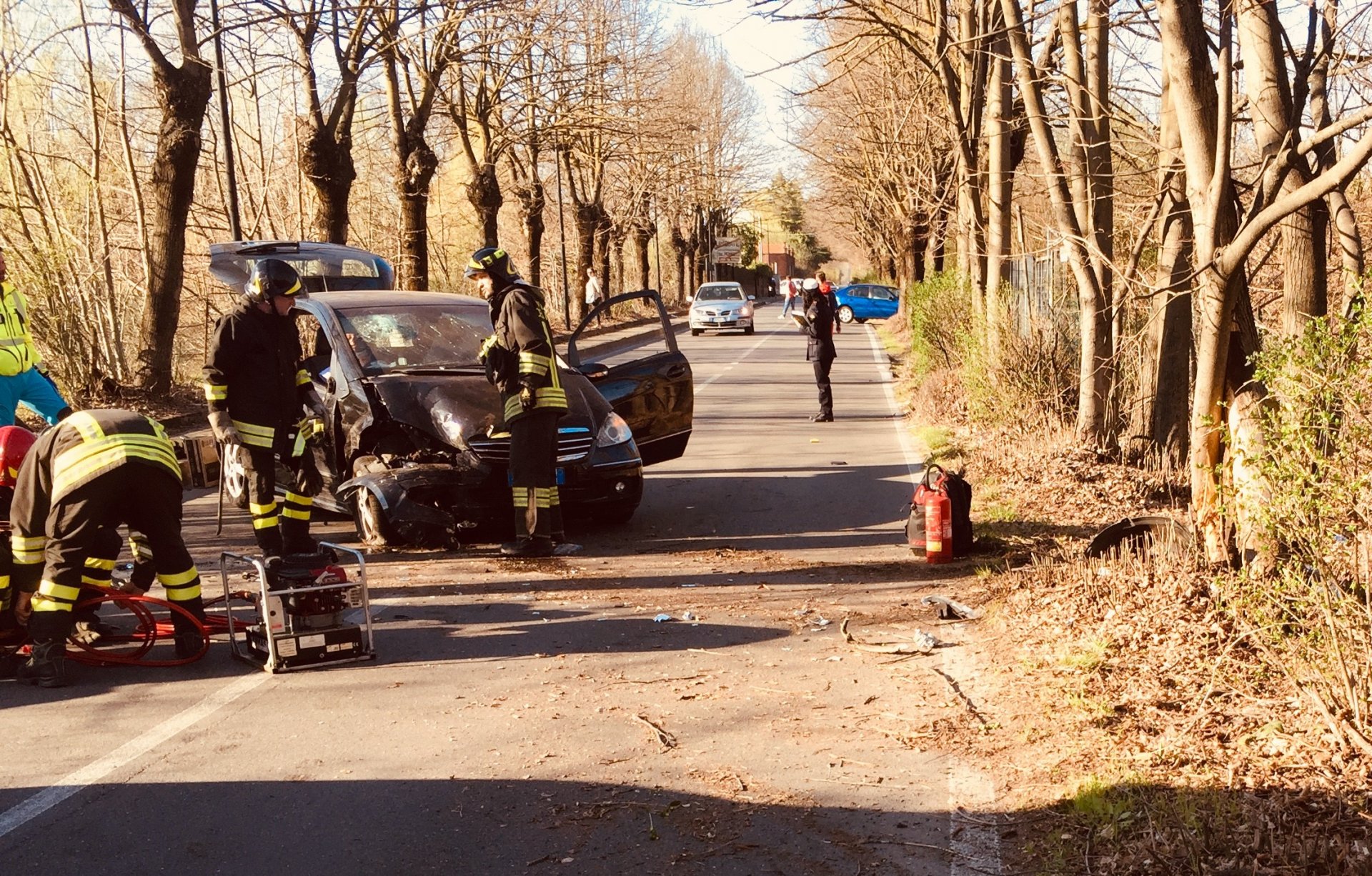 Violento l’impatto tra l’albero e la parte anteriore destra della vettura, tanto che per liberare il passeggero, una 26enne, è stato necessario l’intervento dei Vigili del fuoco. I pompieri sono riusciti ad aprire la portiera e far uscire la ragazza dall’abitacolo. In via Stelvio sono accorse anche l’ambulanza della Misericordia di Arese e l’automedica.