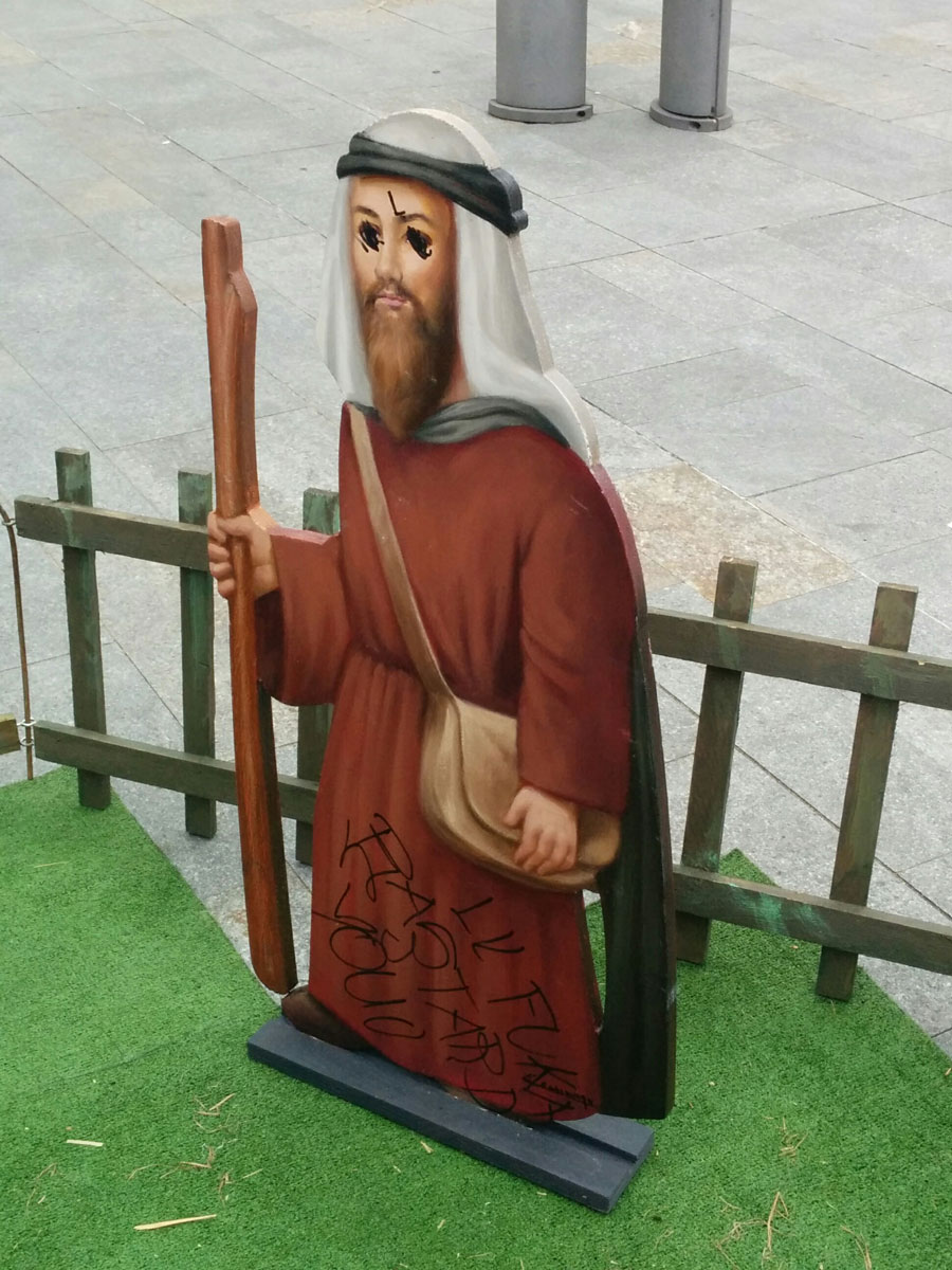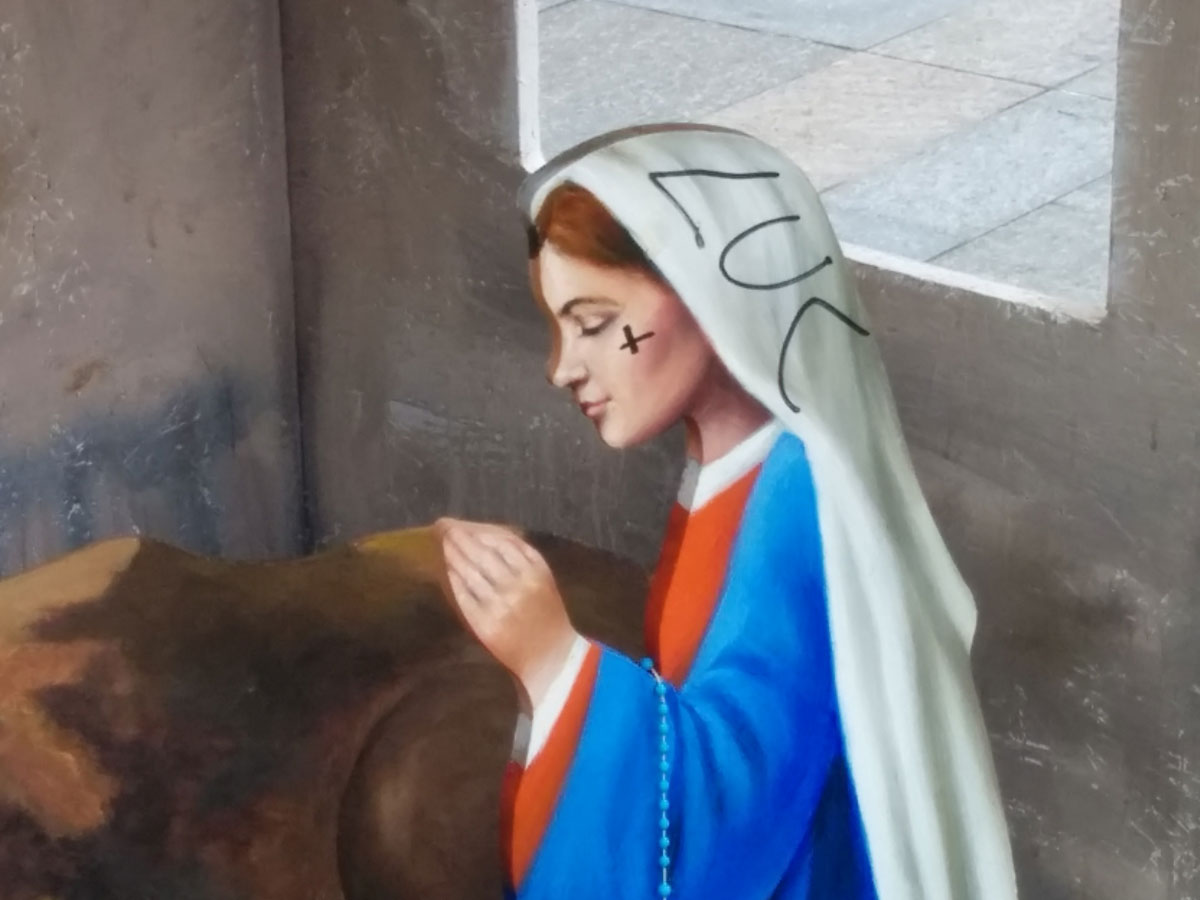 della Repubblica. I vandali hanno approfittato della notte per scrivere con un pennarello sulle sagome cancellando completamente gli occhi di un pastore e scrivendo una frase offensiva in inglese sulla sua sagoma. Anche Giuseppe e Maria sono stati deturpati con alcune scritte, oltre a Gesù bambino.