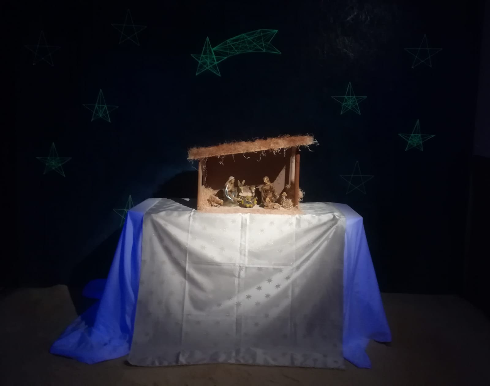 «L’idea ci è venuta da un lavoretto portato da una nostra contradaiola alla riunione: era un personaggio del presepe fatto ritagliando un cartoncino nero e incollando della carta velina per colorarlo. Abbiamo pensato di farlo in grande, inserendo tutti i personaggi. Per dare più importanza a Gesù abbiamo usato solamente carta velina bianca e lo abbiamo posizionato più avanti rispetto al resto – spiega il capitano Susanna Caimi – Volevamo anche inserire una frase che spiegasse l’importanza della luce che da dietro ogni cartoncino illumina tutto il presepe ed esalta i colori. La scelta è ricaduta su una frase del Vangelo di Giovanni: “Veniva nel mondo la Luce vera, quella che illumina ogni uomo”».
