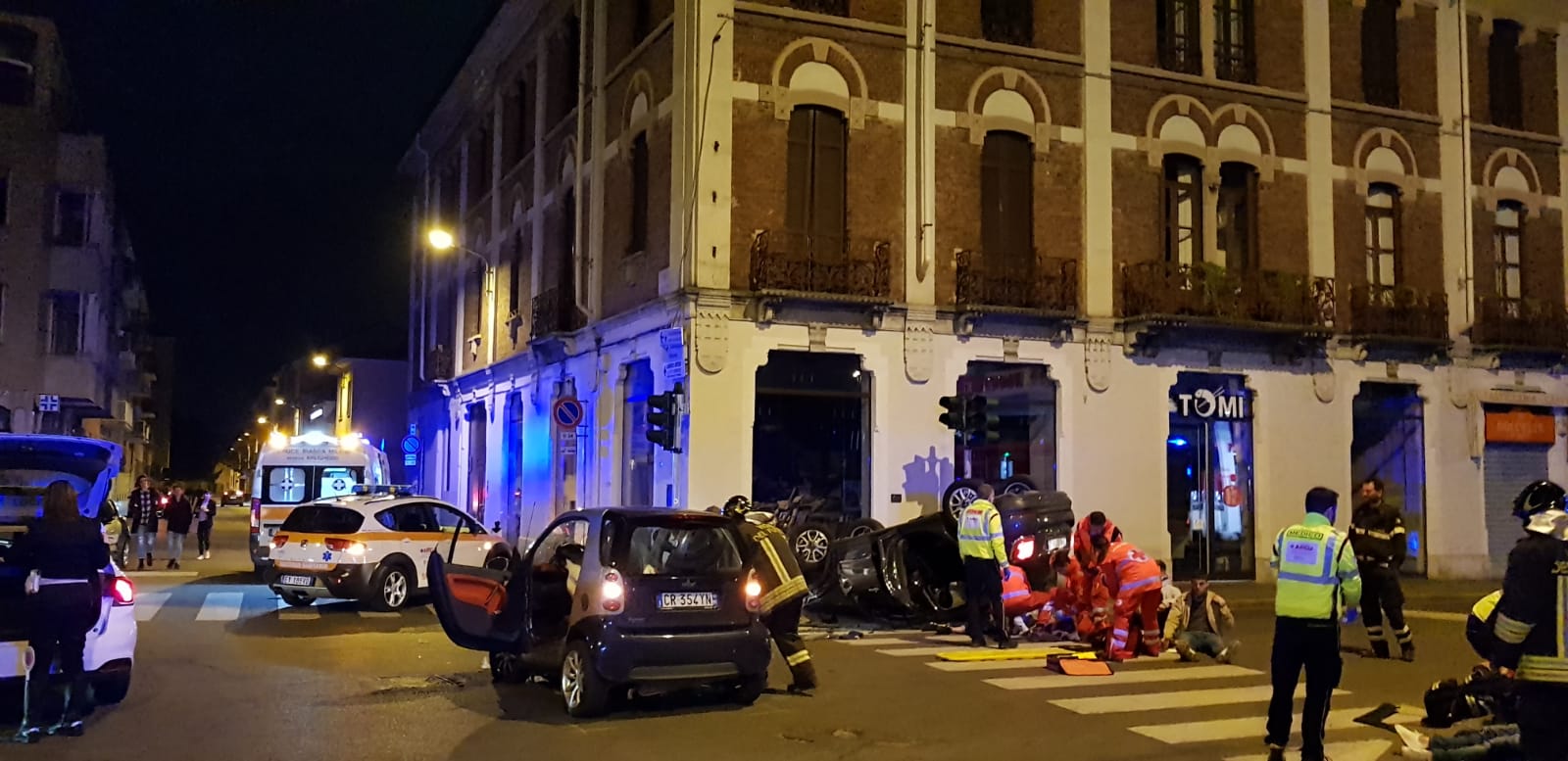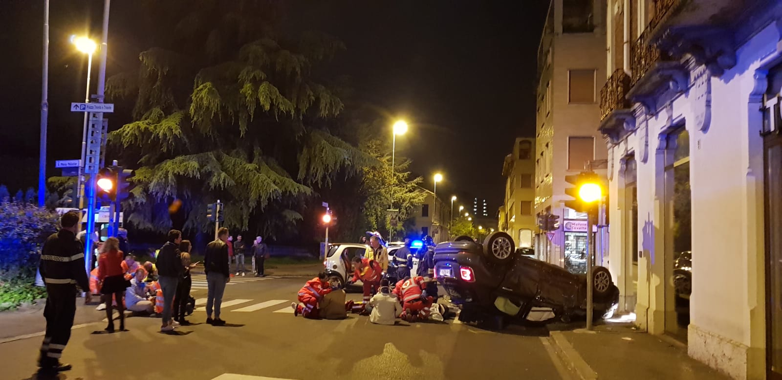 Ribaltamento a Monza, sei giovani in ospedale. FOTO E VIDEO.