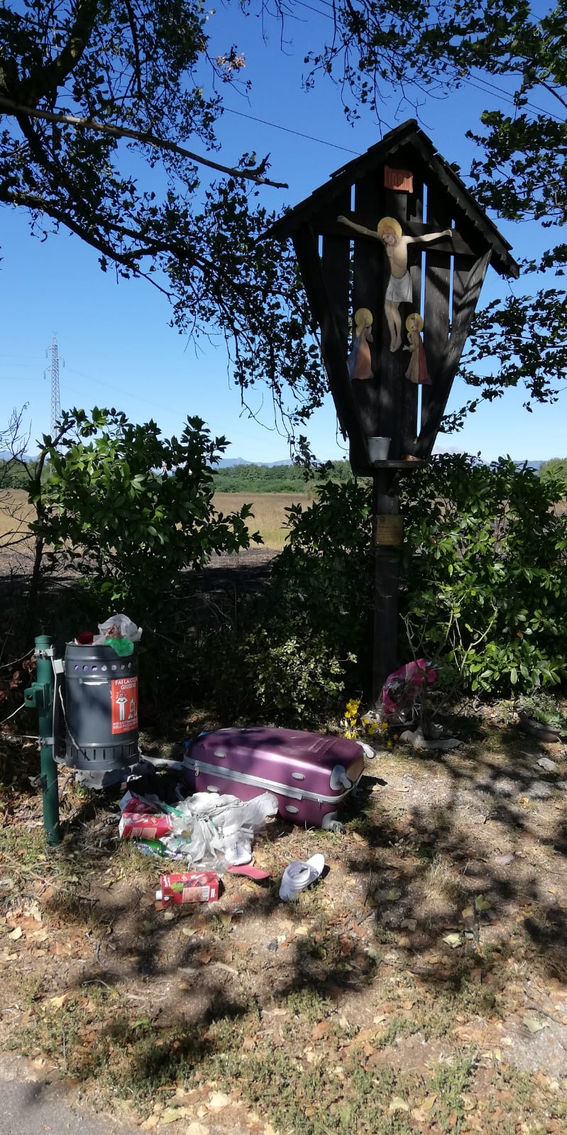 Rifiuti abbandonati anche sotto il crocifisso