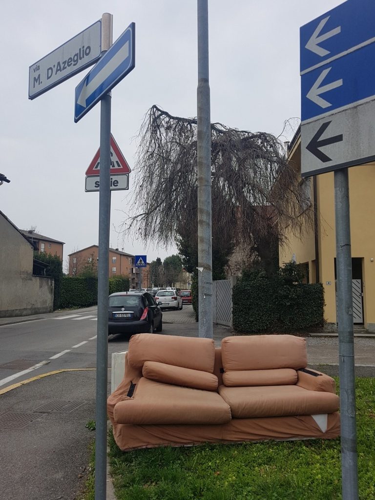 Rifiuti abbandonati: in via D’Azeglio anche un divano.