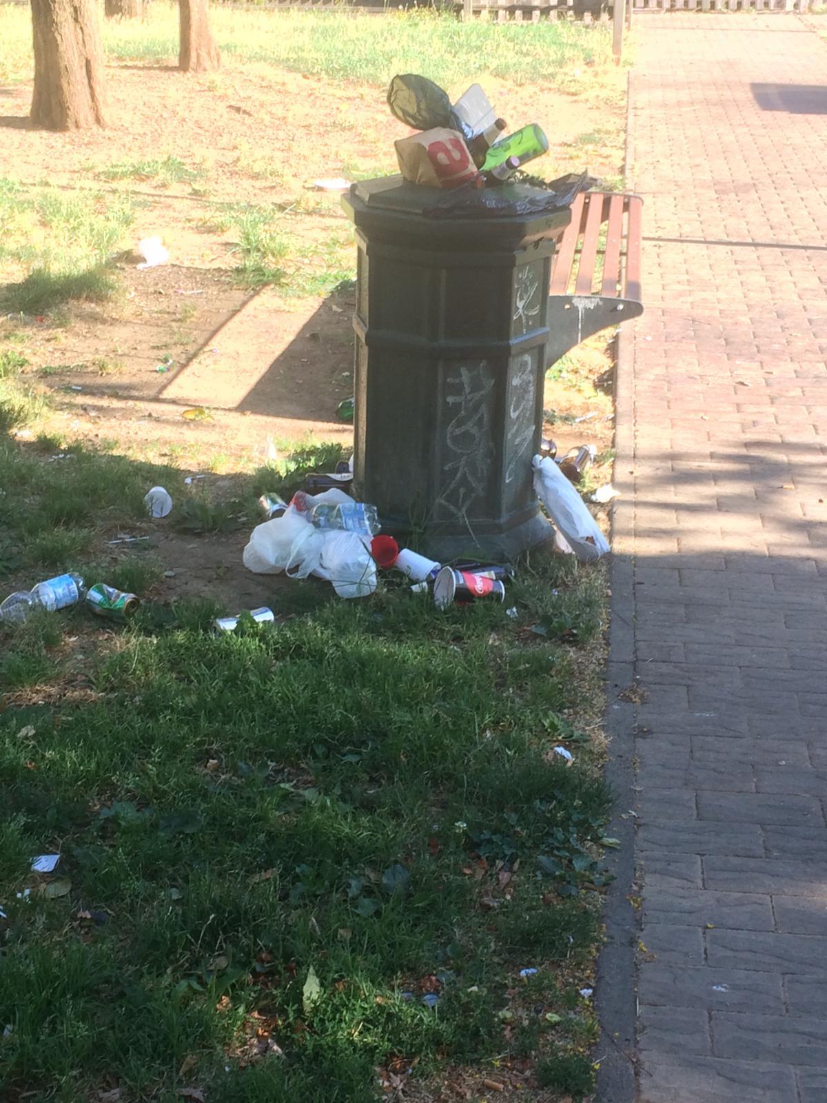 Cumuli di bottiglie di birra vuote abbandonati a ridosso dei cestini, cartoni della pizza lasciati in mezzo al parchetto. E ancora sacchetti dei fast food sparsi per il prato, involucri di medicinali e altro ancora.