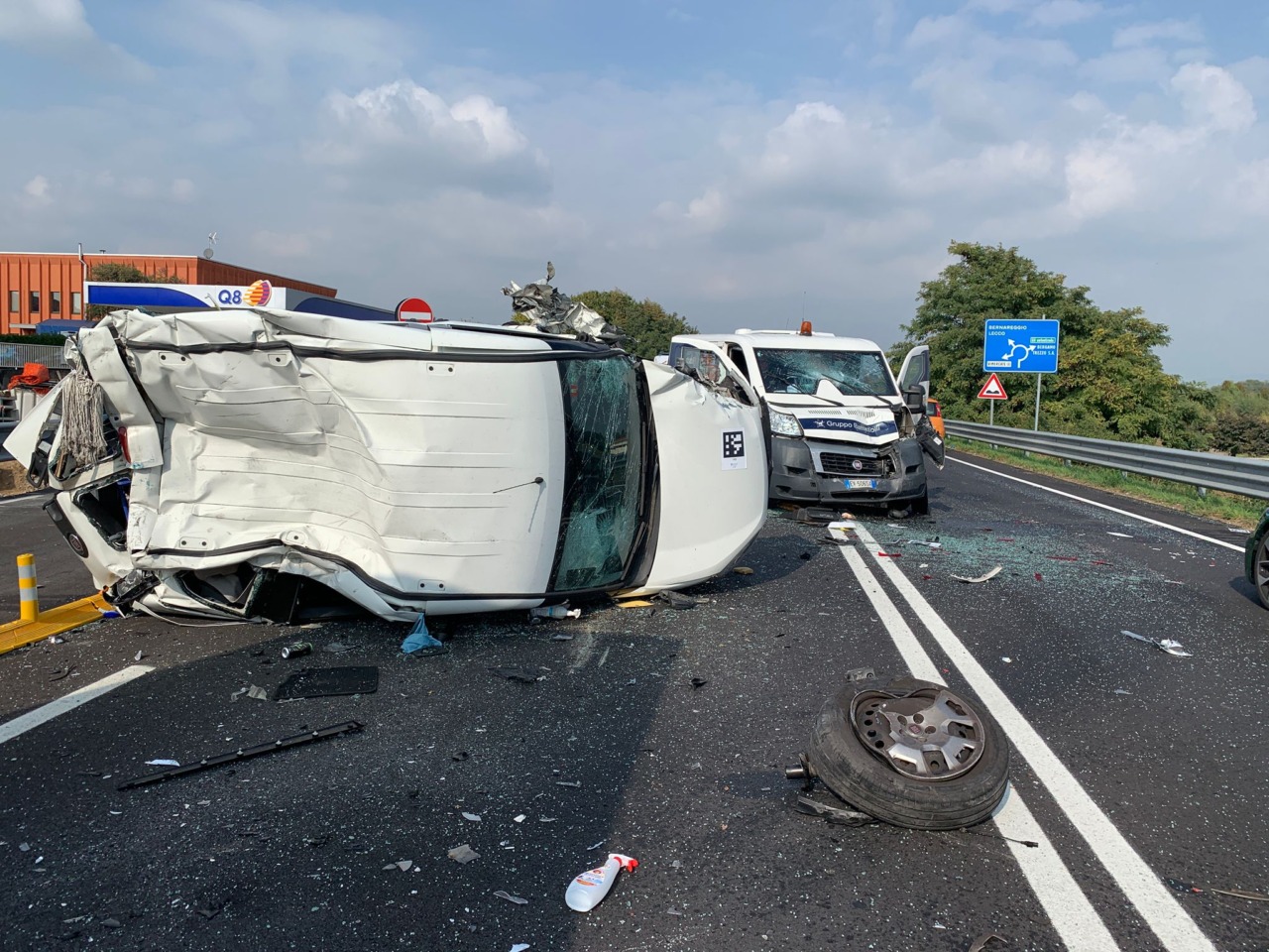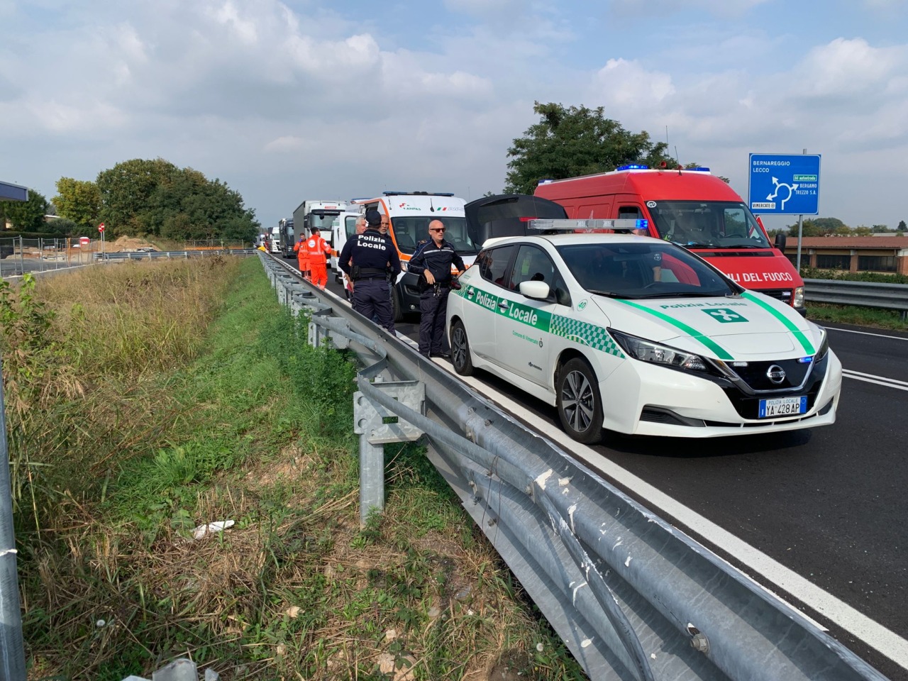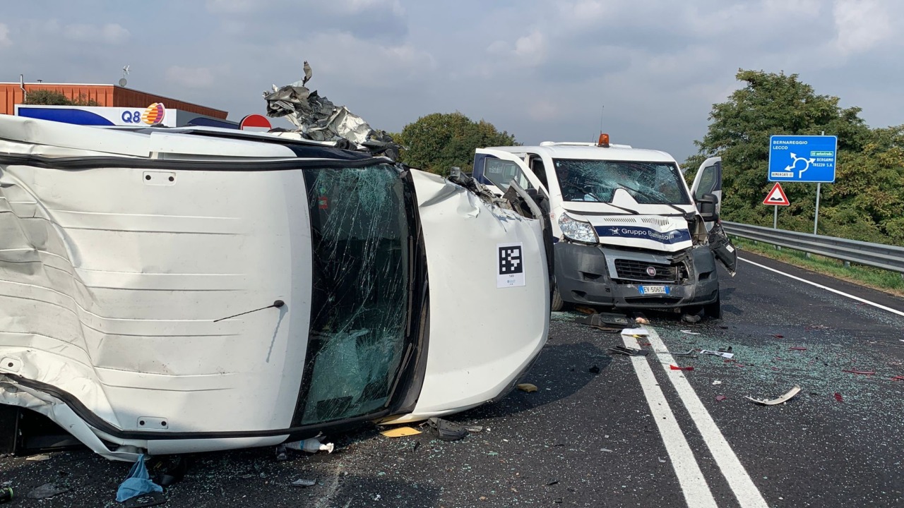 E’ di quattro feriti il bilancio del tremendo schianto frontale tra tre furgoni avvenuto oggi pomeriggio, mercoledì 15 ottobre, a Vimercate, sulla SP2, all’altezza della nuova area di servizio in costruzione la tangenziale Sud, per tutti la “Bananina”.
