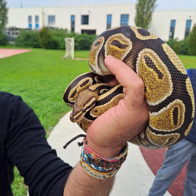 Si tratta di un pitone reale, un serpente originario dell’Africa centro-occidentale, una specie esotica molto diffusa come animale da compagnia per il carattere generalmente docile e le dimensioni contenute rispetto ad altri pitoni (da adulto può raggiungere circa un metro e mezzo di lunghezza).