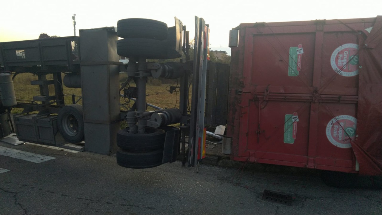 Si ribalta il rimorchio del camion