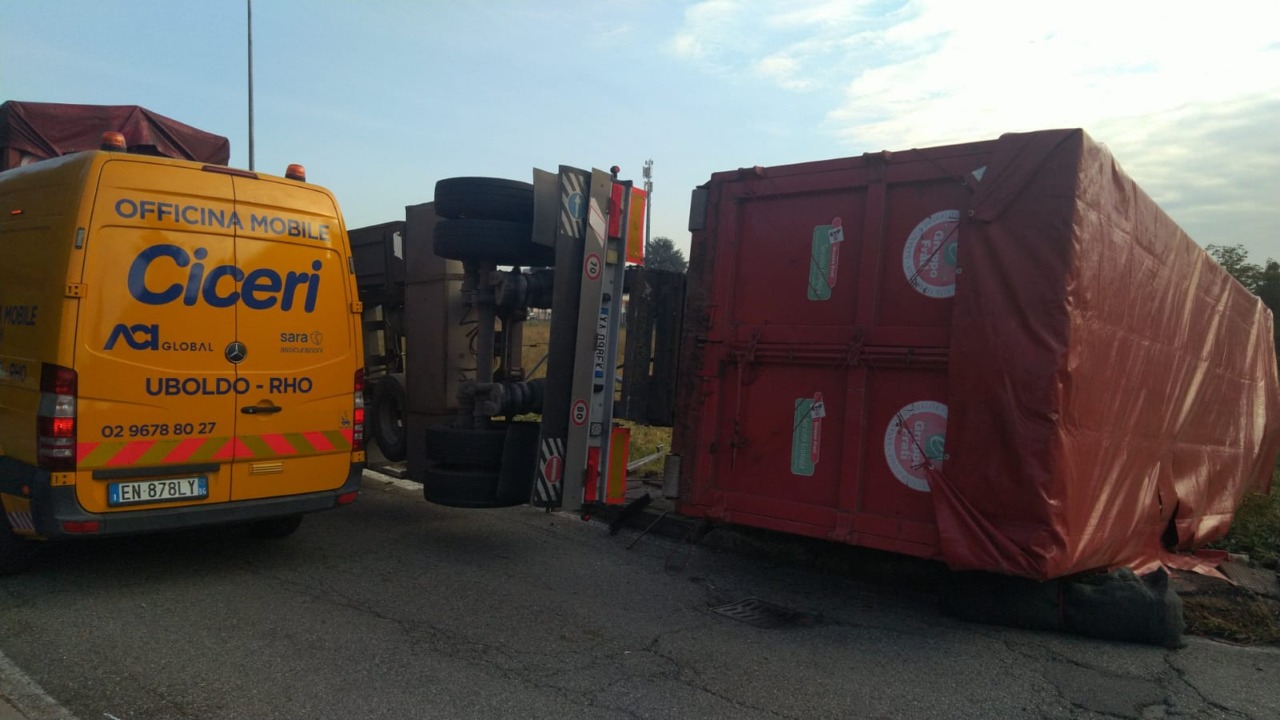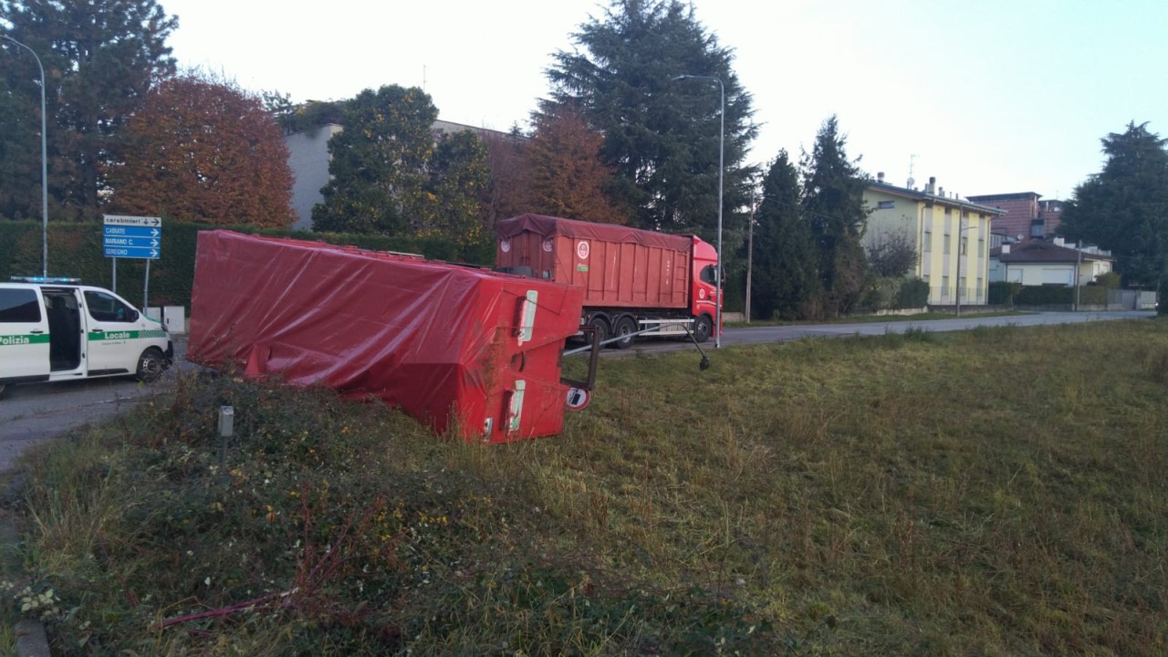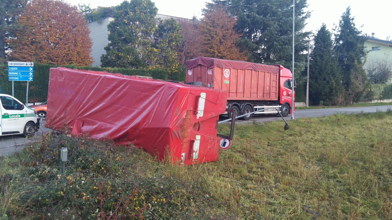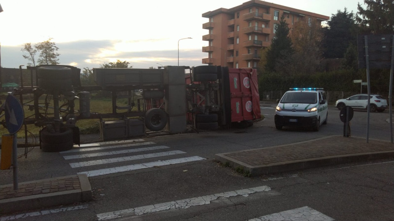 In base a quanto ricostruito, intorno alle 8 di oggi, mercoledì 12 novembre 2025, l’autista di un mezzo pesante proveniente dalla Milano-Meda stava percorrendo via Piave e, in prossimità della rotonda, ha svoltato a sinistra verso via Lombardia, ma nell’effettuare la manovra il rimorchio si è piegato finendo in parte nel campo che costeggia la strada.