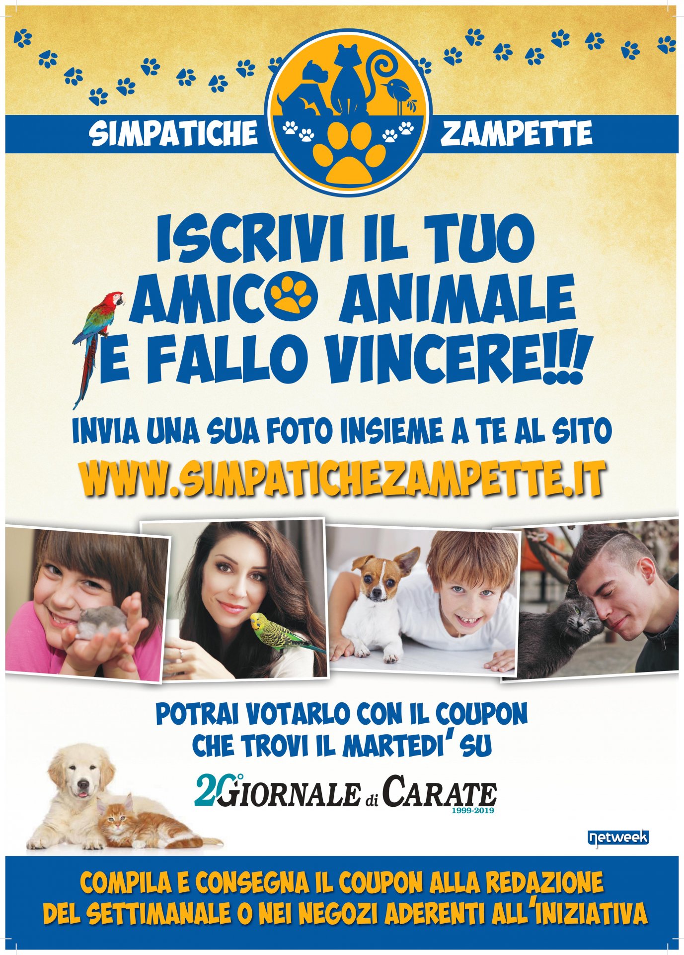 È’ iniziata l’estate e torna puntuale l’iniziativa «Simpatiche Zampette» organizzata dal Giornale di Carate. Una gara aperta a tutti gli animali da compagnia che tanto successo ha riscosso negli ultimi anni anche grazie ai ricchi premi messi in palio per i padroni.