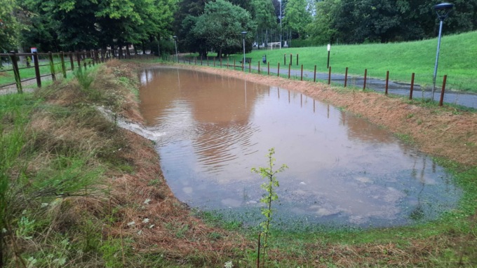 In realtà, purtroppo, ciò non corrisponde a quanto realmente accaduto. Ora è vero che una parte delle acque piovane è stata raccolta dalla vasca (ci mancherebbe altro), ma il grosso ha bypassato le griglie di raccolta della vasca stessa e si è riversata nella parte bassa della via Micca causando l’allagamento della strada (complice anche l’otturazione delle caditoie), oltre che quella del cortile basso li adiacente (la cosiddetta corte del Pescatore), come visibile dalle immagini scattate al termine del nubifragio”.