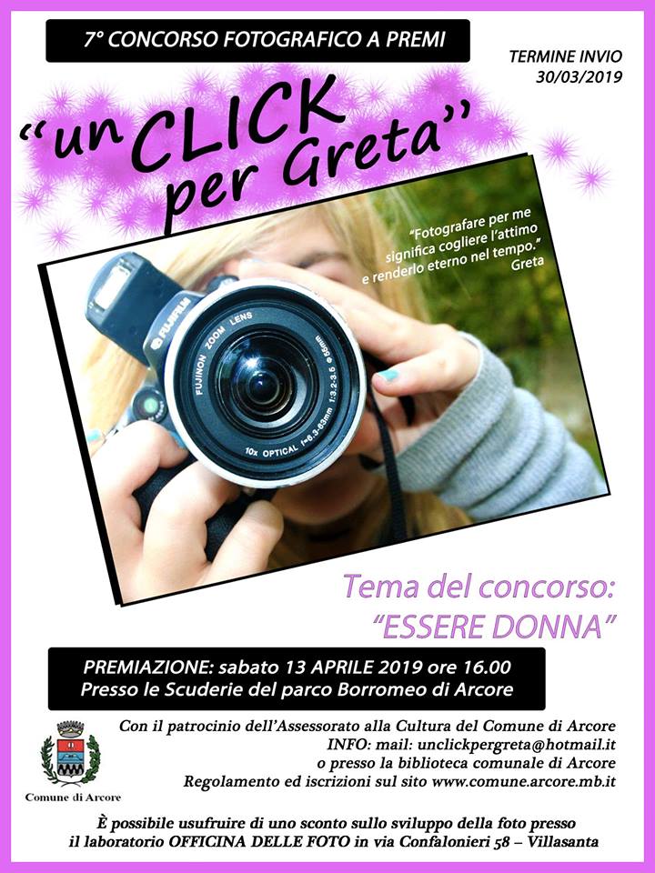 Il ricordo di Greta Casiraghi continua a rimanere vivo grazie alla fotografia. Anche quest’anno il Comune di Arcore, in collaborazione con la famiglia e gli amici di Greta, propone la settima edizione del Concorso fotografico «Un click per Greta», in memoria della 17enne, scomparsa a causa di un terribile incidente stradale la sera del 27 novembre del 2011 a Villasanta. (guarda qui la premiazione della scorsa edizione)