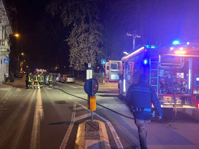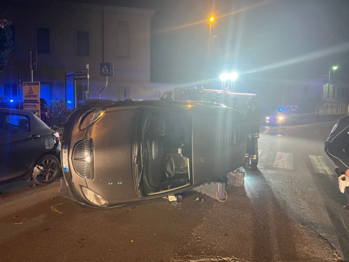 Poco dopo la mezzanotte la donna, al volante di una “Lancia”, stava procedendo lungo la strada quando ha urtato uno dei veicolo parcheggiati, ribaltandosi. Immediato l’intervento dei soccorritori. Sul posto è intervenuta un’ambulanza, seguita dai mezzi dei Vigili del Fuoco (un’autopompa del Comando di Monza e una del distaccamento di Lissone). Le squadre hanno proceduto soccorrendo la conducente e mettendo in sicurezza la vettura.