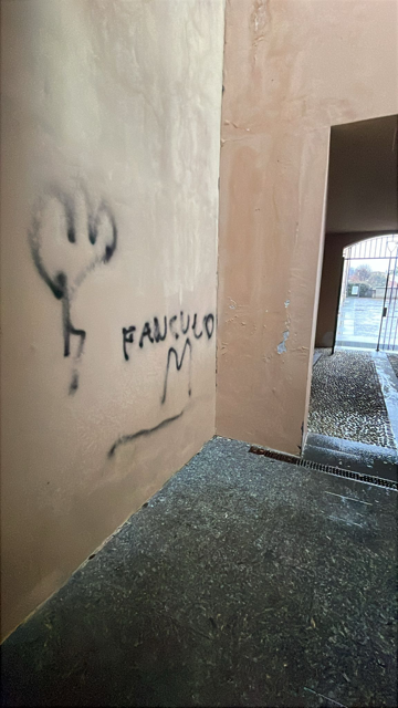 Ignoti sono entrati in azione, armati di bombolette di vernice spray, imbrattando i muri del passaggio pedonale che porta verso piazza Pertini e dove si trova l’attuale sede cittadina del Cai.