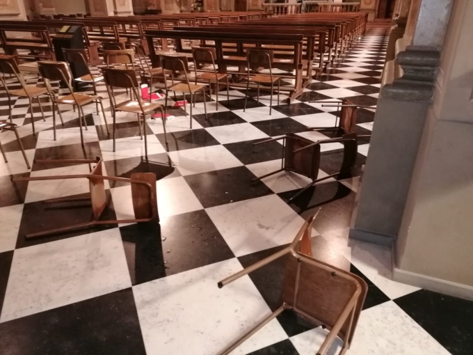 Hanno scaraventato a terra la croce d’altare in ottone, piegandola, poi hanno rovesciato alcune sedie e i libri dei canti, ma anche spruzzato ovunque il gel disinfettante, persino lungo la navata centrale. Ignoti si sono introdotti in chiesa, nel cuore del centro storico medese, e hanno puntato all’altare. Il crocifisso da appoggio è stato gettato sul pavimento ed è rimasto danneggiato. Non contenti, gli incivili hanno buttato a terra le sedie nella zona dell’ingresso e i libri, per poi rovesciare il liquido per igienizzare le mani.