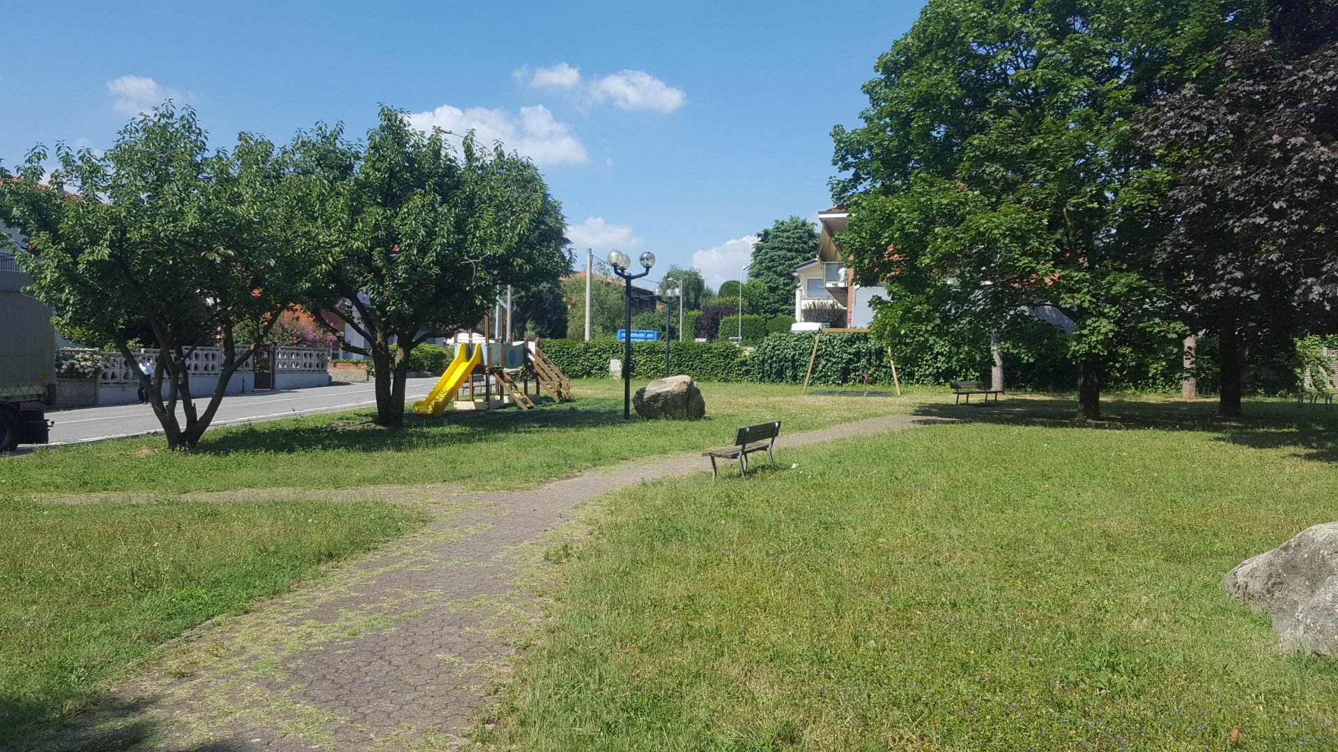 A segnalare la notizia un papà che porta la figlia nell'area verde intitolata a "Papa Giovanni  Paolo II"