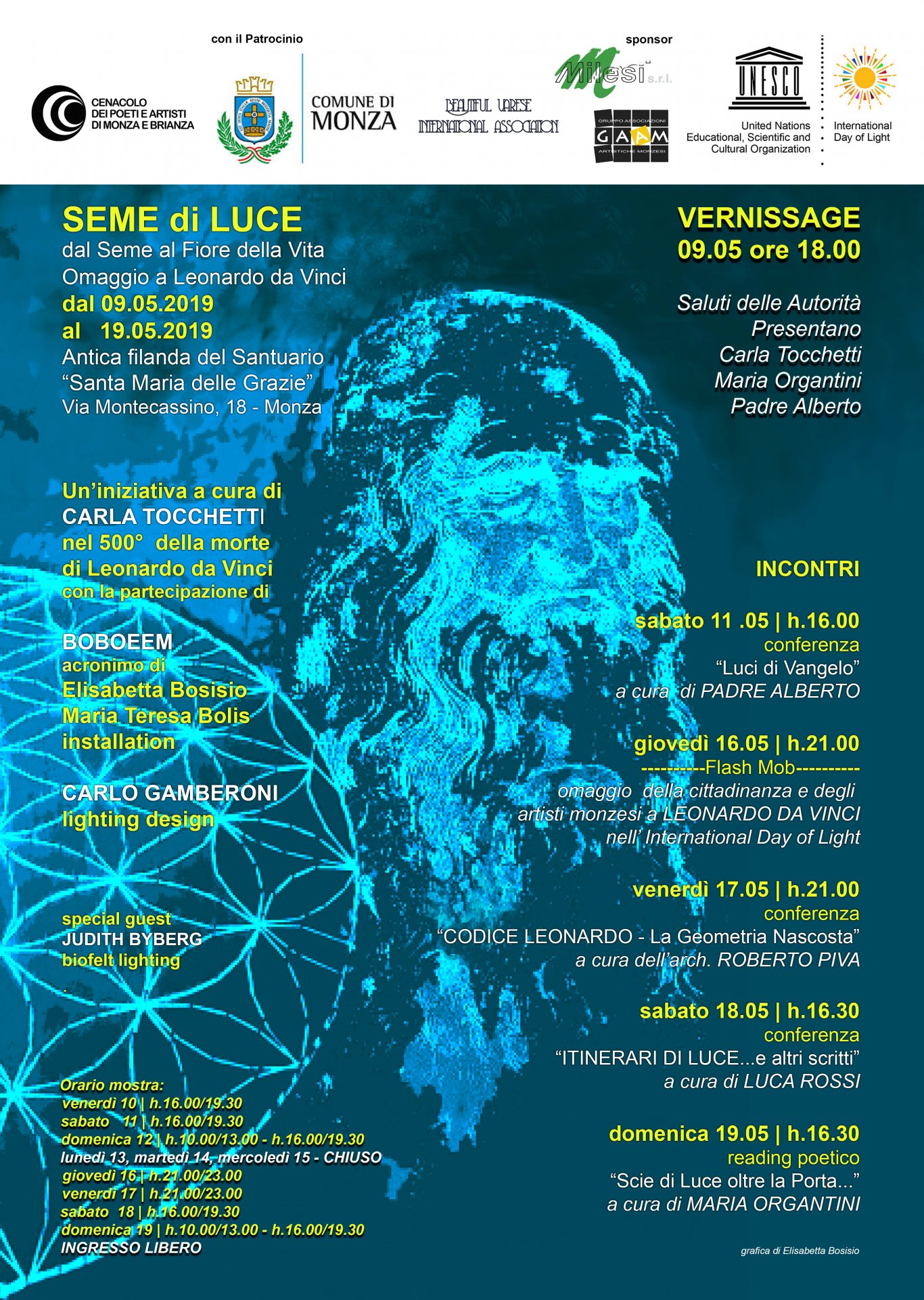 Sabato 9 maggio alle 18, nell’ex filanda del convento di Santa Maria delle Grazie, il Cenacolo dei poeti e artisti di Monza e Brianza in collaborazione con Beautiful Varese International Association inaugurerà la mostra – evento “Seme di luce: dal seme al fiore della vita”, omaggio a Leonardo Da Vinci nel 500esimo anniversario dalla morte.