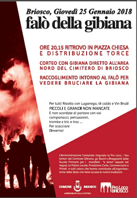 La vecchia Gibiana ha le ore contate a Briosco. Giovedì 25, infatti, si terrà il tradizionale falò. Appuntamento a partire dalle 20,15: da piazza della chiesa all’area nord del cimitero.