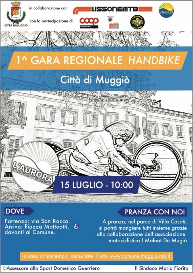 Tutto è ormai pronto per accogliere la prima Gara regionale paralimpica di handbike città di Muggiò, in programma domenica e organizzata con la collaborazione del Comune, delle associazioni «L’Aurora» e «Lissone Mtb» e con la partecipazione di Coop Lombardia, sezione locale Cai e Malnat de Mugiò. ( nella foto di copertina il direttivo de L’Aurora con i Malnat)