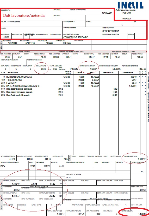 Esempio di busta paga