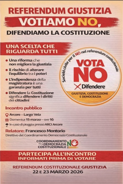 Infine, mercoledì 18 marzo alle 21:00, il Partito Democratico di Arcore invita la cittadinanza presso la Sala Civica Sant’Apollinare. Durante la serata, moderata dal segretario dem di ArcoreDavide Pennati, gli avvocati Antonino Salsone e Giorgio Mele spiegheranno le motivazioni che hanno spinto il partito a schierarsi per il “No” riguardo alla riforma promossa dal Governo.