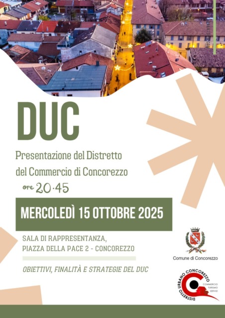 “Il compito del Distretto sarà quello di definire le linee guida, pianificare progetti e coordinare iniziative per rendere Concorezzo una città sempre più attrattiva, viva e accogliente – ha sottolineato Borgonovo – Con questa Cabina di Regia vogliamo costruire una visione condivisa per il futuro del commercio cittadino, sostenendo le nostre attività e valorizzando il cuore di Concorezzo come luogo di incontro e socialità. Un doveroso ringraziamento ai componenti della cabina di regia e al manager del distretto Maurizio Torresani. Nello specifico vogliamo valorizzare le attività commerciali di vicinato, migliorare l’attrattività del centro urbano, realizzare eventi, iniziative e campagne di promozione, favorire innovazione, digitalizzazione e servizi ai cittadini nonchè promuovere collaborazione tra pubblico e privato”.