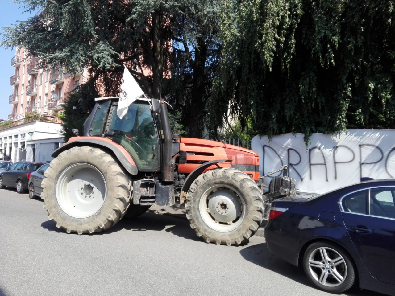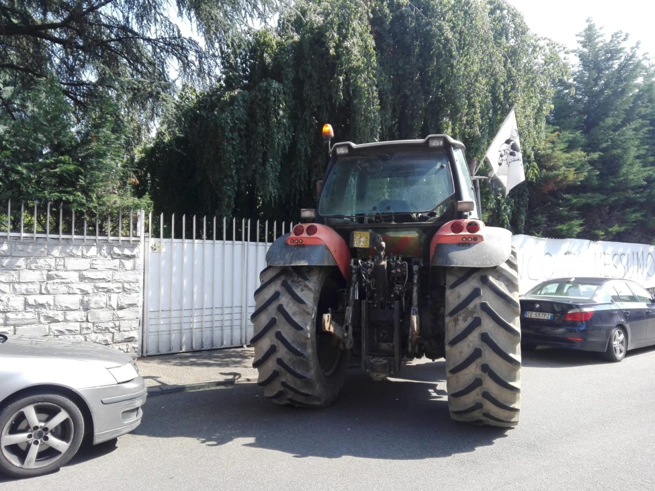 Simbolico anche un trattore, con la famosa bandiera dei Cobas, parcheggiato davanti allo stabile dove è ora in corso l’incontro tra Bramini e i vertici della Lega Nord.