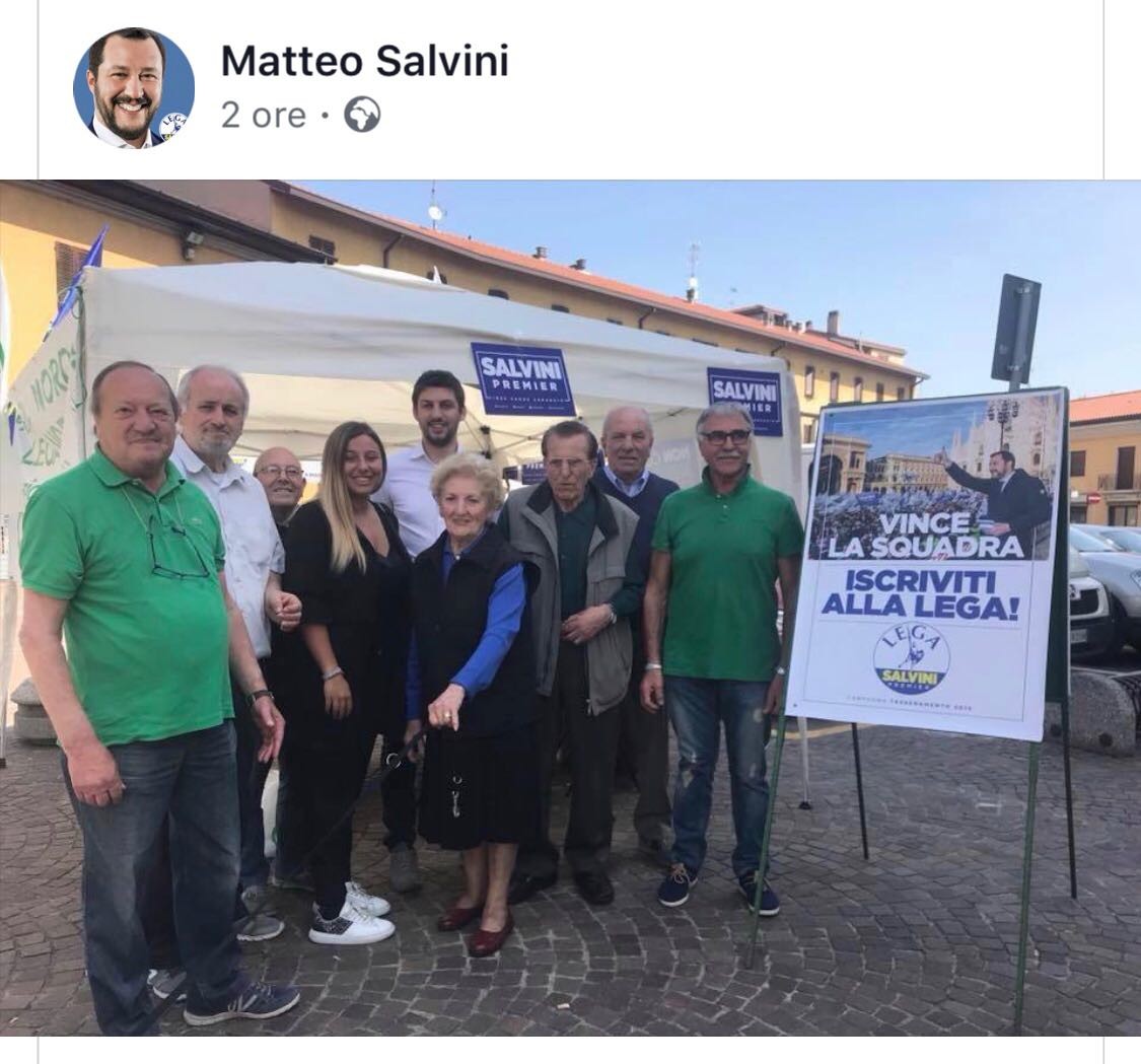 Militanti della sezione muggiorese della Lega Nord al settimo cielo. Il leader Matteo Salvini ha postato sul suo profilo facebook la foto del gruppo guidato dal segretario Gianmaria Pizzaballa, impegnato domenica mattina al gazebo, allestito in piazza Garibaldi, per raccogliere le adesioni e i tesseramenti. Al banchetto a dar man forte tra volantini e manifesti c’era anche il consigliere regionale Alessandro Corbetta.