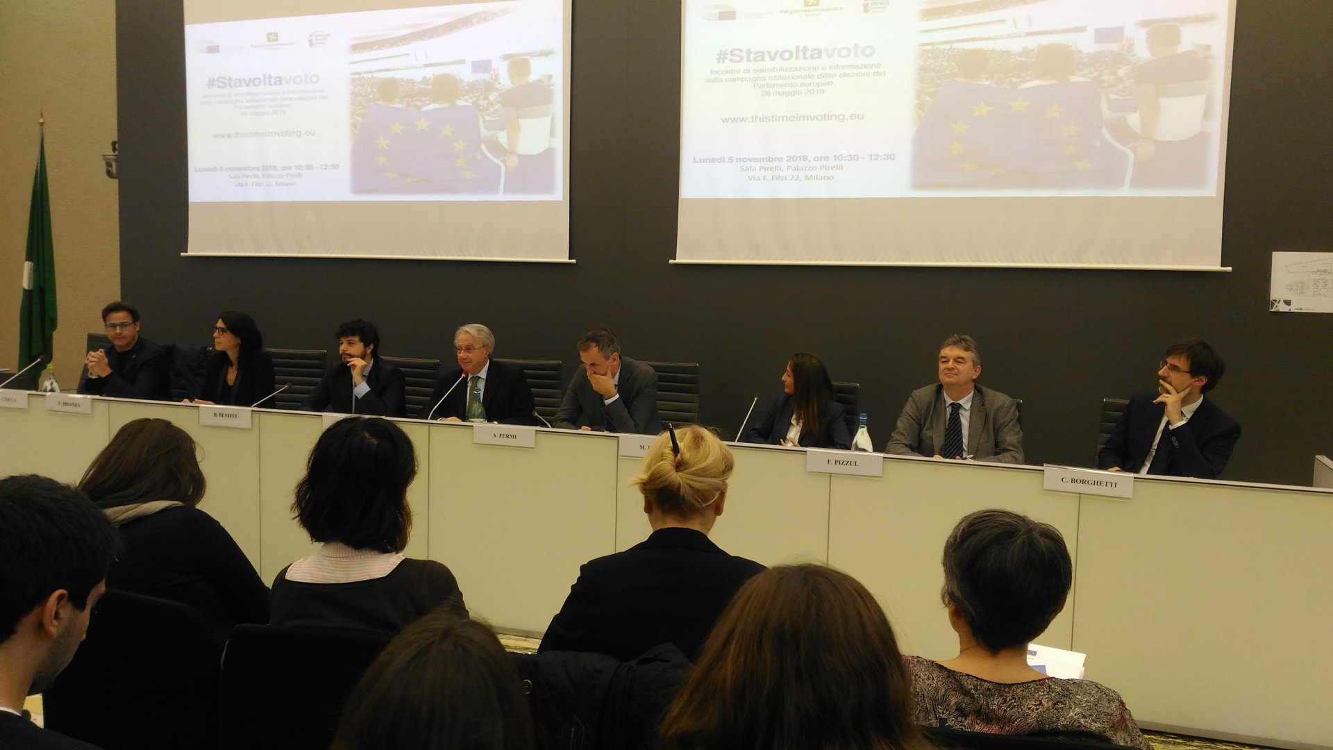 #Stavoltavoto per le elezioni europee 2019: è partita la campagna istituzionale per le elezioni del Parlamento europeo che si terranno il 26 maggio 2019. L’Ufficio di Milano del Parlamento europeo, il Consiglio regionale della Lombardia e Europe Direct Lombardia hanno organizzato un incontro di sensibilizzazione e informazione che si è svolto lunedì 5 novembre al Pirellone. L’evento ha coinvolto europarlamentari, consiglieri regionali, amministratori locali, cittadini. Molti gli studenti presenti, anche in collegamento da tutte le sedi territoriali di Regione Lombardia.