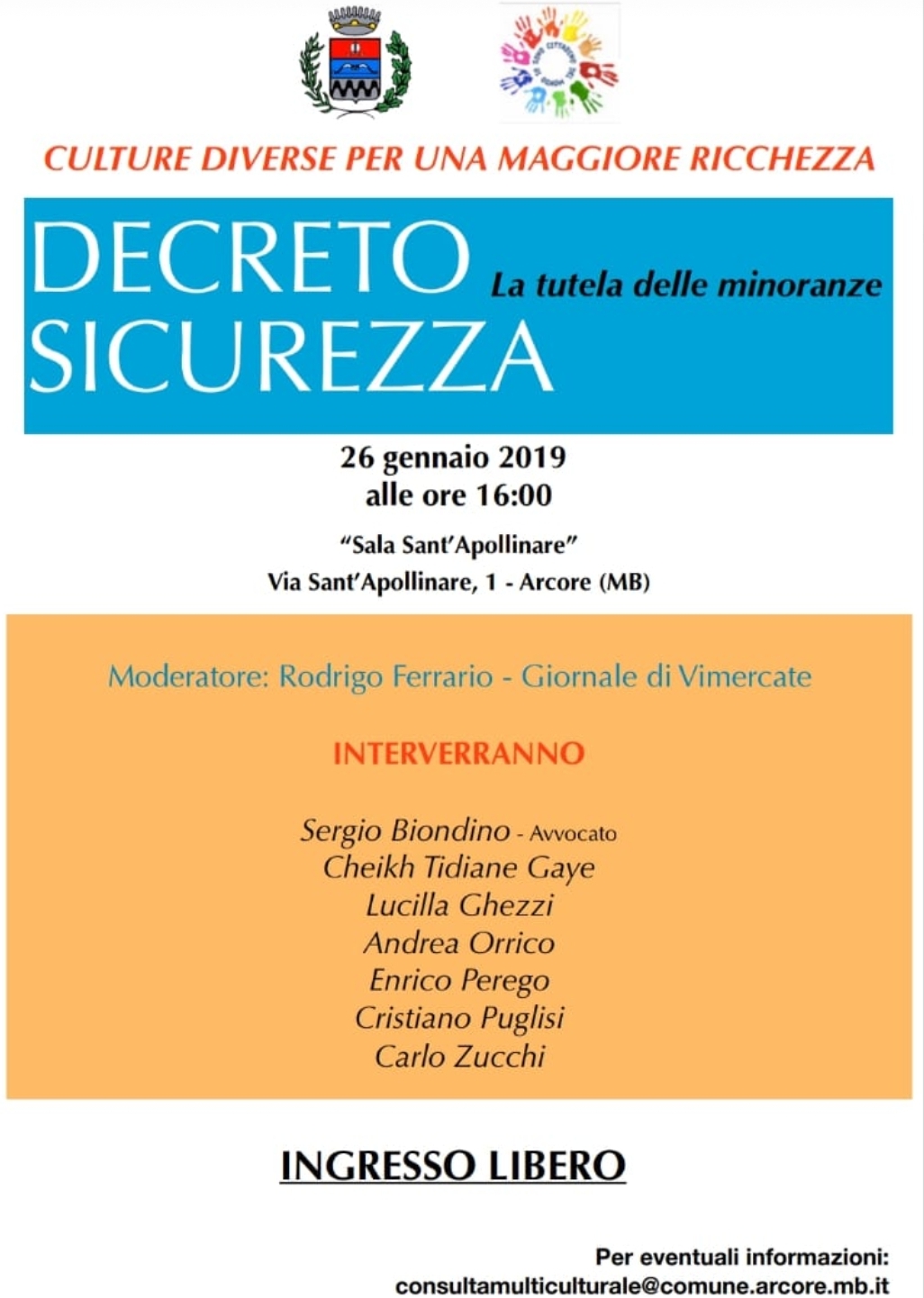 Incontro organizzato dalla Consulta multiculturale arcorese con il patrocinio del Comune di Arcore.