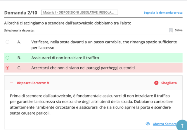 Una funzione che tutti apprezzano. Easy Quizzz fornisce anche la spiegazione, servizio che non abbiamo trovato altrove. Gli utenti sottolineano l’utilità di questa integrazione, perchè accelerare l’apprendimento.