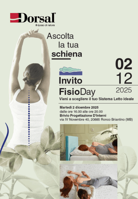 Proprio in continuità con la filosofia del vivere comodo Brivio progettare abitare vivere aspetta tutti gli interessati martedì 2 dicembre dalle ore 16 alle 20 nella sede di via IV Novembre a Ronco Briantino per l’evento “Fisio Day – Vieni a scegliere il tuo sistema letto ideale”. Sergio Brivio e tutto lo staff, vi aspettano!