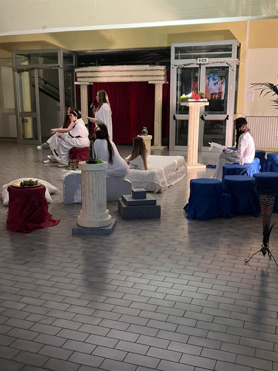 Durante l’Open Day è stato presentato Un Galateo in scena, esito di un’Unità di Apprendimento interdisciplinare che ha coinvolto Letteratura italiana, Storia dell’arte, Scienze motorie ed Educazione civica. Come sottolinea la professoressa Luciana Inchingolo, l’obiettivo del percorso non era «accumulare informazioni sul Rinascimento, ma metterle in azione: farle diventare corpo, voce, scelta, relazione». Attraverso un autentico compito di realtà, gli studenti sono stati chiamati a progettare e costruire una “tranche de vie” di corte rinascimentale, articolata in quadri narrativi ideati da loro stessi, intrecciando materiali disciplinari e fonti storiche. Il Galateo di Giovanni Della Casa ha funzionato da bussola morale e comportamentale, non come testo museale ma come repertorio di regole di convivenza ancora interrogabili oggi: come si sta insieme senza invadere lo spazio altrui? Come si conciliano libertà individuale e qualità della vita collettiva? Ne è nato un lavoro corale che ha favorito collaborazione, assunzione di ruoli, cura del dettaglio e capacità di tenere insieme rigore e creatività, restituendo al Rinascimento non una narrazione, ma un’esperienza vissuta.