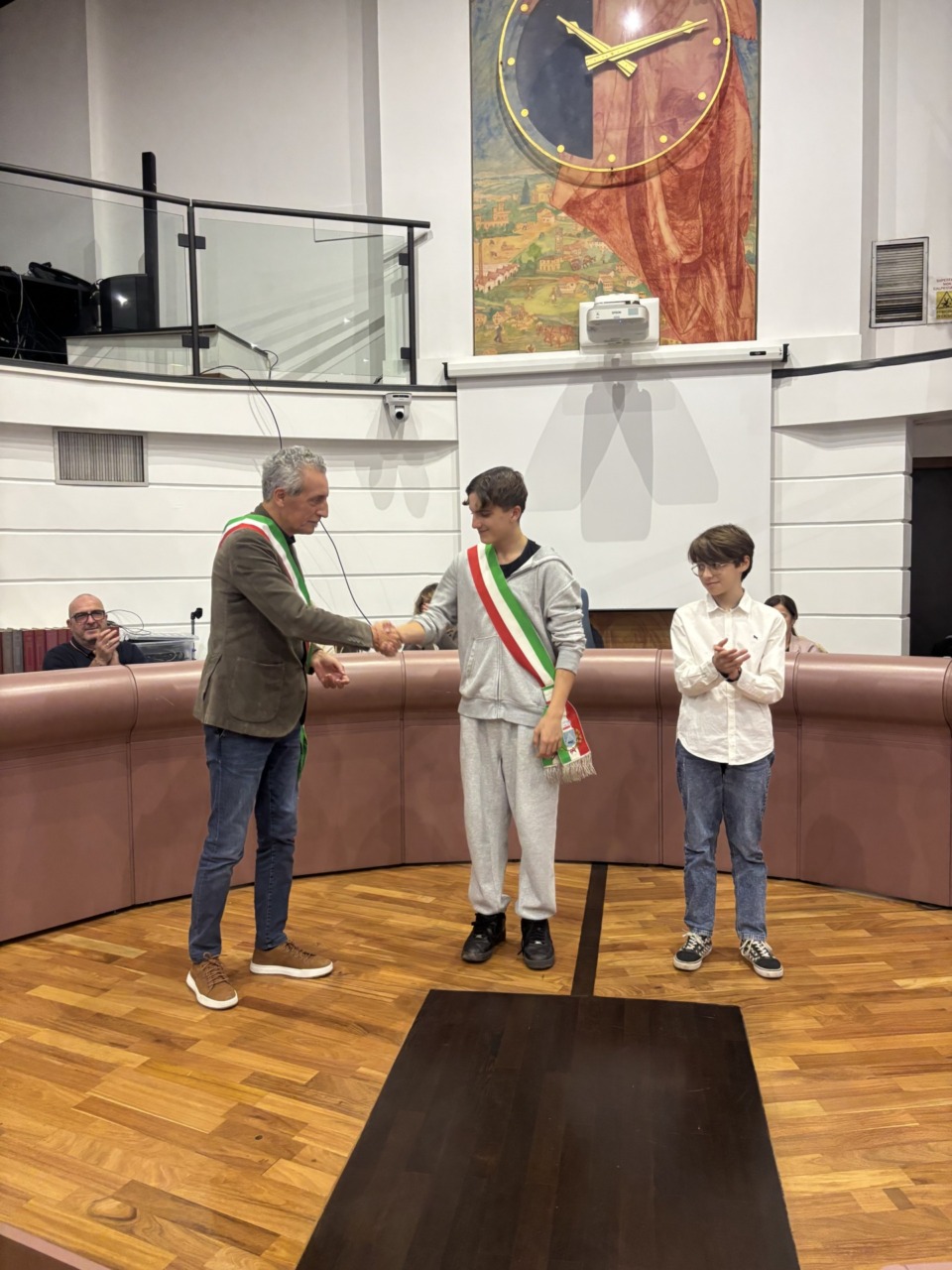 Durante l’insediamento il sindaco «senior», Pietro Giovanni Cicardi, ha proclamato ufficialmente il nuovo sindaco dei ragazzi e delle ragazze: si tratta di Francesco Monizza (classe 3°B) della scuola media «Casati» che sarà affiancato durante il mandato dal vicesindaco Francesco Zoia (classe 3°A).