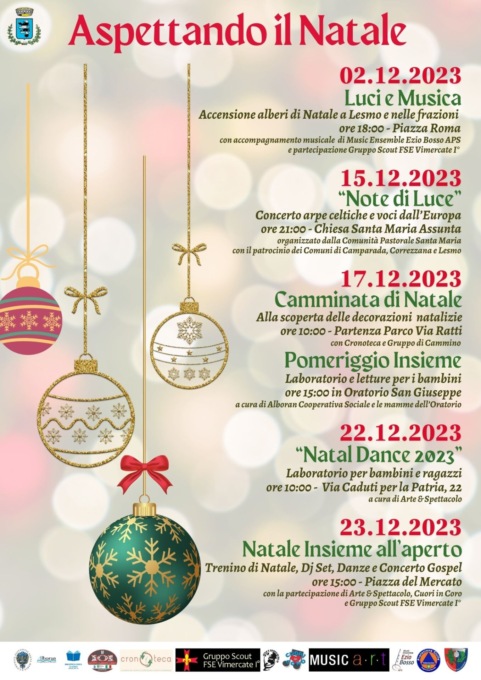 Primo appuntamento della rassegna “Aspettando il Natale”, sabato 2 dicembre alle ore 18 in Piazza Roma accensione dell’albero di Natale accompagnati dalle musiche della scuola di musica Ezio Bosso. Saranno presenti in piazza alcune bancarelle delle associazioni e il Gruppo Scout FSE Vimercate I° per un momento di rinfresco. Al contempo saranno accese le luminarie anche nelle frazioni.