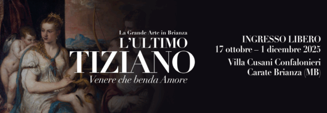 Prosegue, a Carate Brianza, la mostra “L’Ultimo Tiziano – Venere che benda Amore” presso villa Cusani Confalonieri. L’esposizione resterà aperta fino al 1° dicembre 2025 dalle 9:00 alle 19:00 con ingresso libero durante la settimana e prenotazione obbligatoria nel fine settimana e nei festivi sul sito www.lagrandearteinbrianza.it