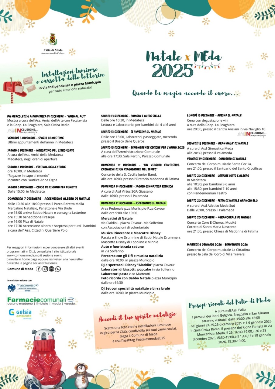Meda si prepara a vivere la magia del Natale 2025 con tante iniziative pensate per i più piccoli e per tutta la famiglia.