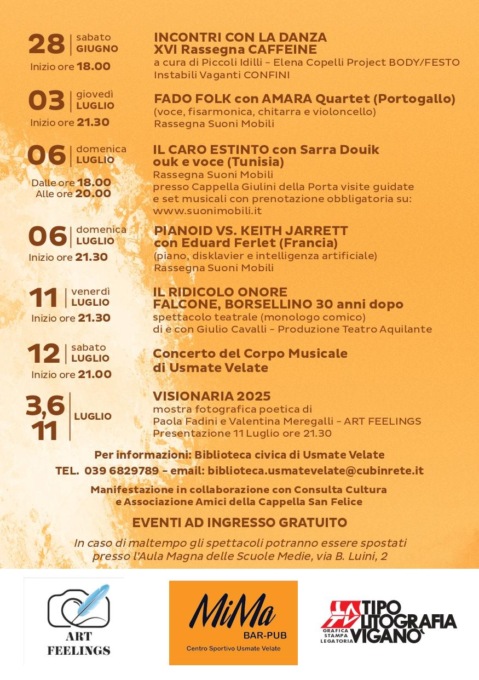 Dal 28 giugno al 12 luglio, teatro, musica, danza e arte animeranno alcuni dei luoghi più suggestivi di Usmate Velate, con un programma di eventi culturali pensato per tutte le età.