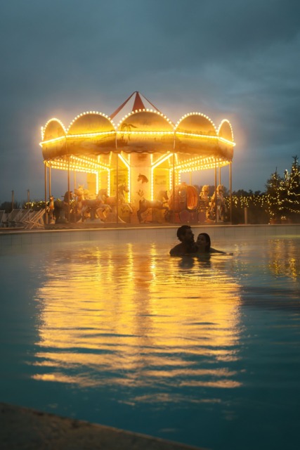 Protagonista assoluta dell’allestimento natalizio 2025 è una splendida giostra di cavalli vintage, installata tra le vasche esterne: un simbolo poetico e scenografico che cattura lo sguardo e diventa manifesto di una nuova idea di benessere, ciclico, dinamico e sempre in movimento.